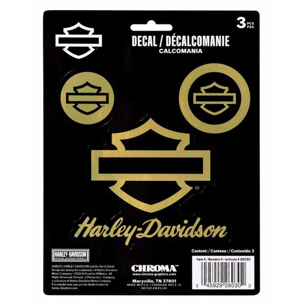 3‑PIECE SILHOUETTE B&S GOLD CHROME VINYL DECAL / CG26030 – zlatá chromovaná samolepka (sada 3 ks)
