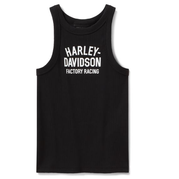 Dámské tričko TAN-KNIT Factory Racing v černé barvě přináší závodní DNA Harley-Davidson v siluetě, která lichotí ženské postavě. Factory Racing grafika odkazuje na tovární závodní týmy H-D – od historických oválů až po dnešní King of the Baggers – ale střih i celkové provedení jsou jasně „women’s fit“, ne jen zmenšená pánská verze.