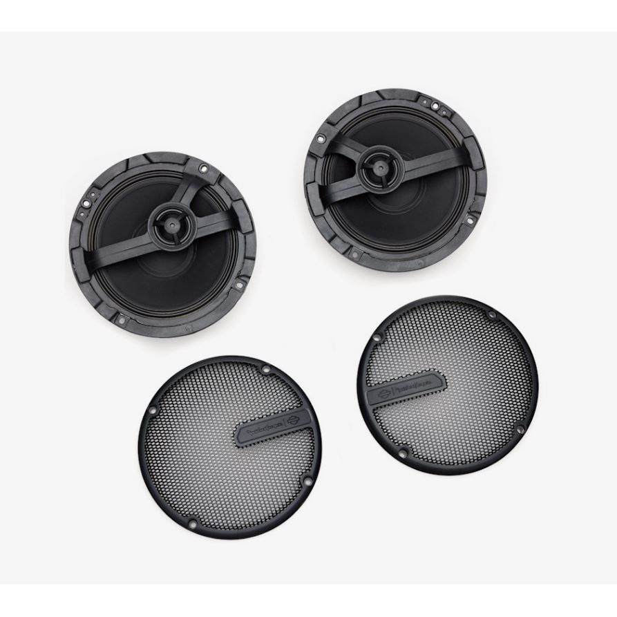 Reproduktory kombinují vstřikované woofer membrány s high‑flux neodymovým magnetem a mostem uchycený tweeter, takže dokážou „utáhnout“ i vyšší hlasitost bez zbytečného zkreslení. Element Ready™ konstrukce je stavěná přímo pro motorku – zvládne vodu, špínu, UV záření i vibrace. Montáž probíhá do originálních housings v Tour-Paku, po instalaci repro jednoduše nakonfiguruješ v Skyline™ OS a můžeš vyrazit.