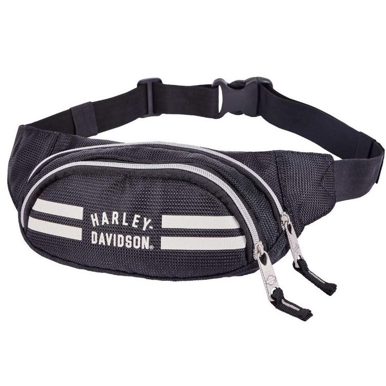 Pruhovaná ledvinka Harley-Davidson H-D Skript Black/Off-White je ideální kousek na cestování, vyjížďky i běžné nošení do města. Kompaktní, ale překvapivě prostorný tvar pojme peněženku, klíče, mobil a další drobnosti, které chceš mít vždycky po ruce – bez nutnosti tahat batoh.