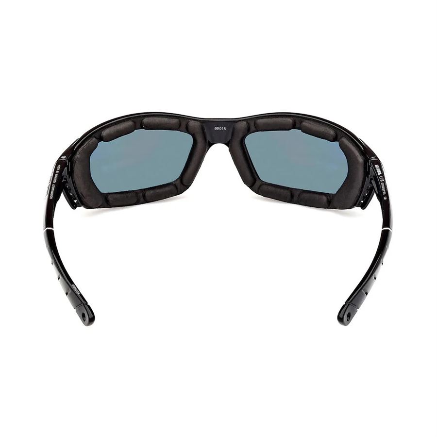 Vnitřní hrana rámu je vybavená měkkým pěnovým lemem, který zvyšuje komfort, pomáhá utěsnit prostor mezi brýlemi a obličejem a omezuje průvan – ideální při jízdě s otevřenou helmou nebo krátkým plexi. Úzké, lehce prohnuté nožičky dobře sedí pod většinou helem a kovové Bar & Shield logo na stranici dodává brýlím jasný H-D podpis.