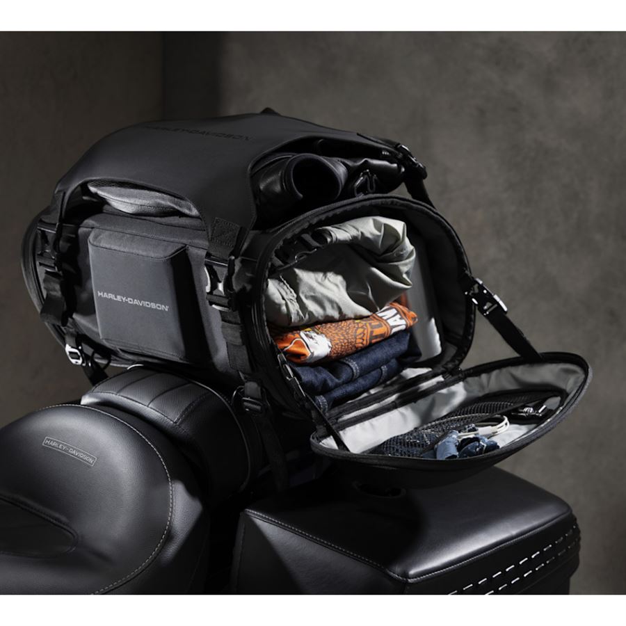 - Ideální velikost na víkend – vejde se vše podstatné, ale motorka si zachová štíhlý profil.