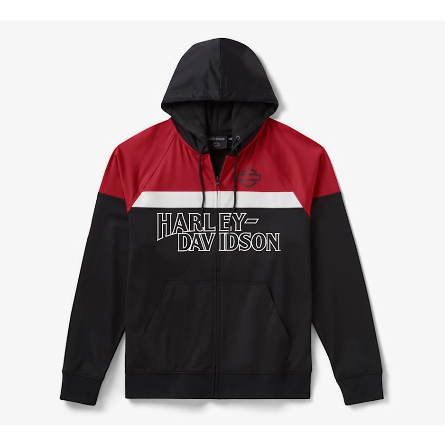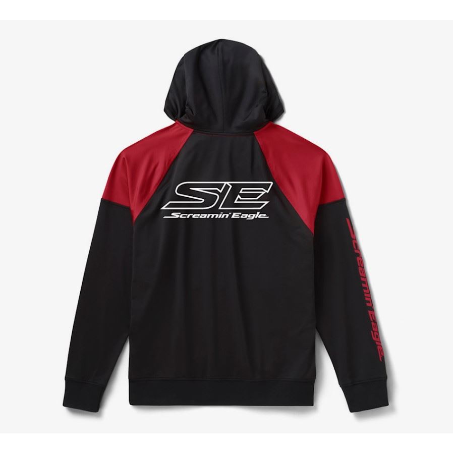 Vylepte svůj styl s naší mikinou Screamin' Eagle® Color Blocked Hoodie, která přináší odvážný a závodní vzhled. Tato mikina je vyrobena z příjemné směsi kartáčované bavlny a polyesteru s přídavkem spandexu pro větší pružnost.