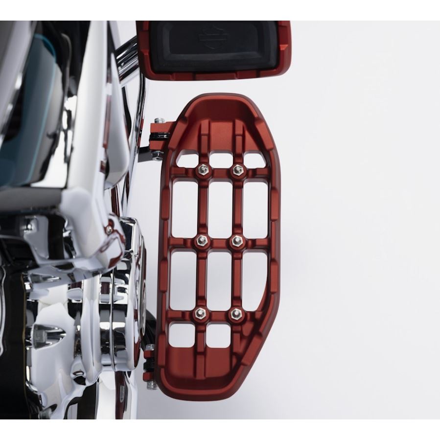 Agresivní výkon a odvážný styl se snoubí v kolekci Redline. Tento kit nožních desek je vyroben z lisovaného hliníku a precizně obráběn, čímž zajišťuje vysokou kvalitu a odolnost. Odolný jasně červený eloxovaný povrch dodává výrazný barevný akcent k vašemu vysoce výkonnému custom motocyklu.