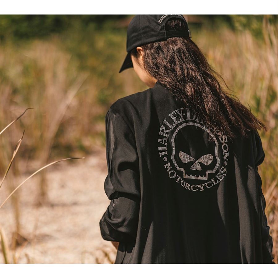 Váš třpytivý motocyklový styl začíná nahoře s naší Willie G™ Bling Skull Ballcap. Tato dámská čepice je vyrobena z prodyšného a odolného 100% bavlněného twillu, což zaručuje pohodlné nošení. S nastavitelným kovovým posuvníkem si můžete snadno přizpůsobit velikost.