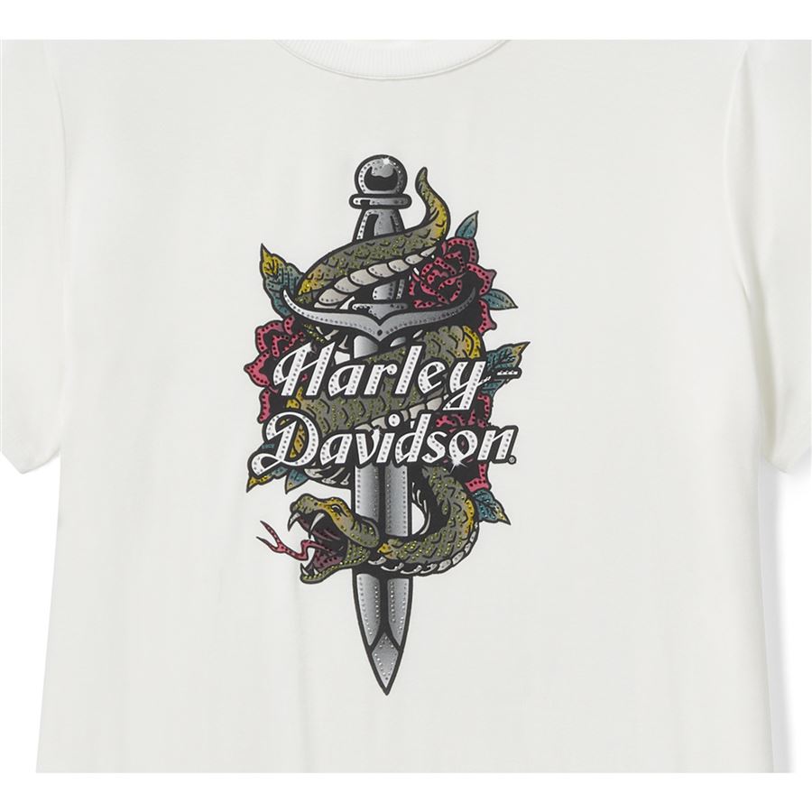 Efektní potisk had-růže-dýka doplněný třpytivými kamínky dodává tričku výrazný vzhled, který si každý všimne.