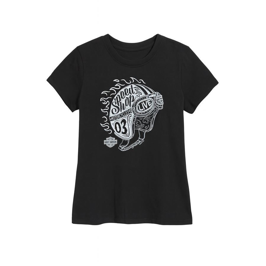 Toto černé tričko z 100% bavlny přináší ikonický vzhled Harley-Davidson s motivem Speed Shop 03 na přední straně.