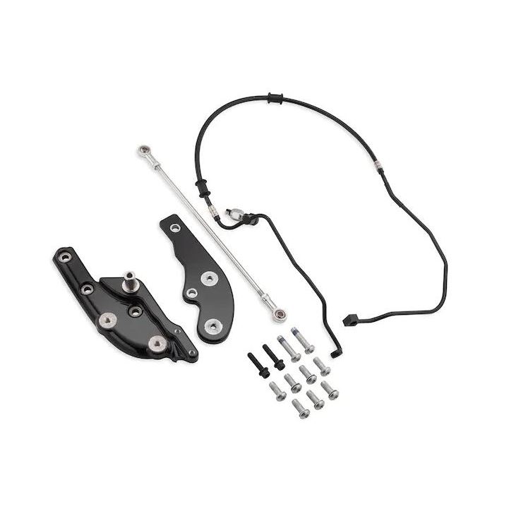 Kit obsahuje vše potřebné pro kompletní montáž – nové černé držáky brzdového a řadicího mechanismu, prodlouženou řadicí tyč, brzdové vedení a kompletní montážní materiál. Je kompatibilní s originálními i doplňkovými stupačkami, brzdovými a řadicími páčkami i pedály.