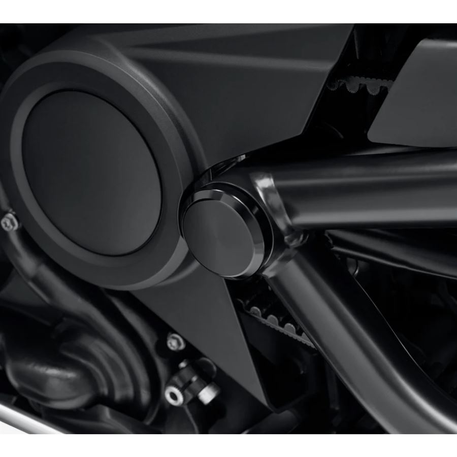 Harley-Davidson® Krytky ramen (Swingarm Pivot Bolt Covers) dodají zadní části motocyklu čistý a elegantní vzhled.