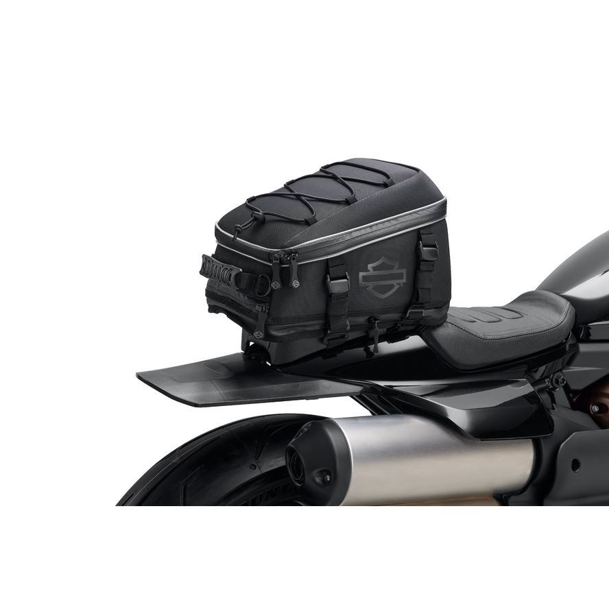 Harley-Davidson Tail Bag 93300128 je rozšiřitelná zadní brašna navržená speciálně pro model Sportster® S. Nabízí praktické a stylové řešení pro převoz nezbytností během jízdy. Díky snadné instalaci a sejmutí je ideální volbou pro každodenní použití i víkendové výlety.