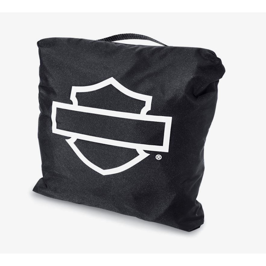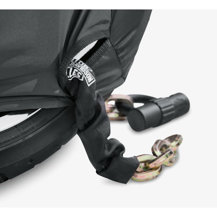 Těžkotonážní Indoor/Outdoor Motorcycle Cover chrání motorku jak v garáži, tak venku před deštěm, UV zářením, prachem i nečistotami. Je vyrobená z 300D polyesteru s diamantovým vzorem odolným proti vyblednutí a podlepené švy zajišťují voděodolnost i při dlouhodobém použití venku. Oranžovo‑černý design s Harley-Davidson® grafikou jasně ukáže, čí stroj se pod plachtou skrývá.