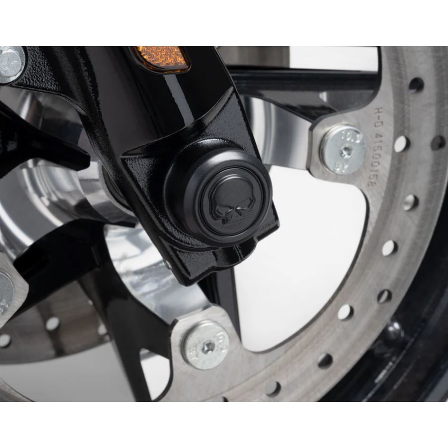Dodejte přední části svého motocyklu ikonický vzhled s Harley-Davidson® Willie G Skull Front Axle Nut Covers.