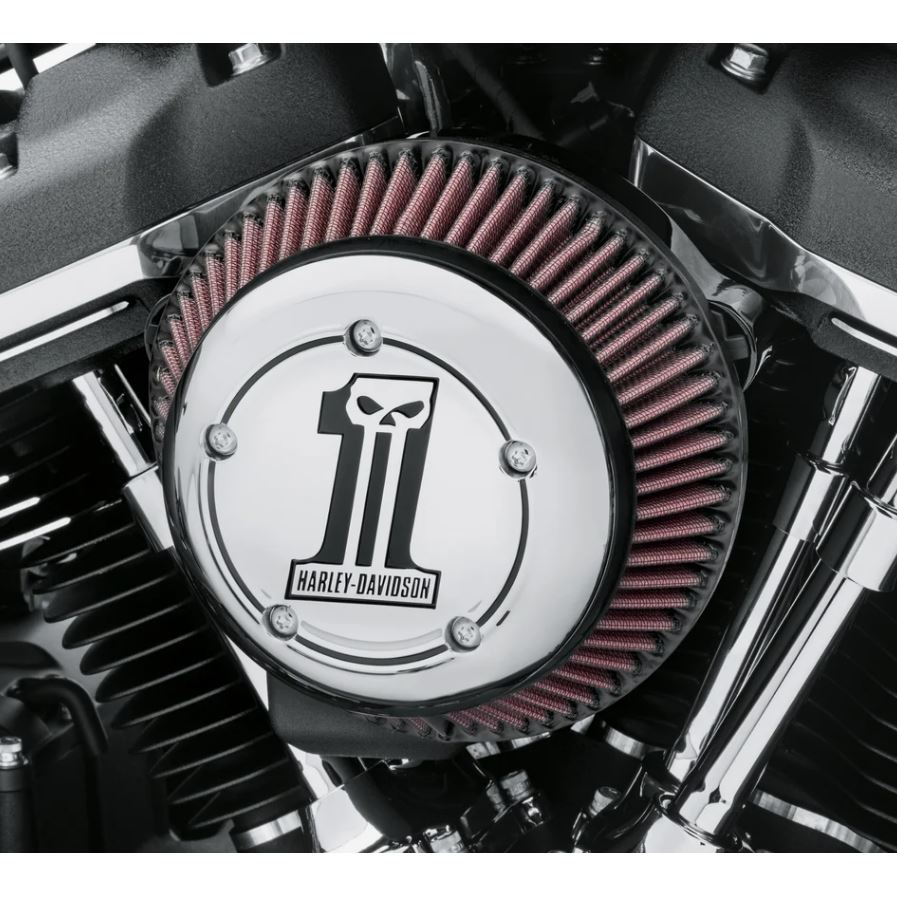 Symbol #1 Skull je ikonou rebelské identity Harley-Davidson, a na air cleaneru působí maximálně výrazně.