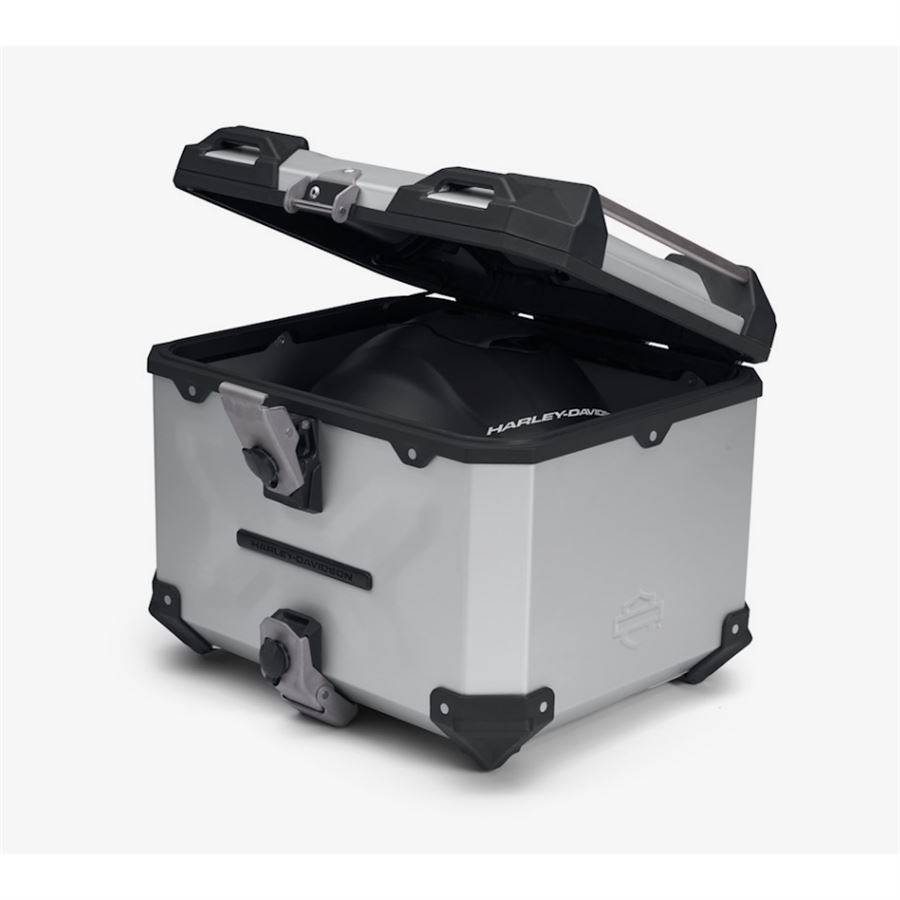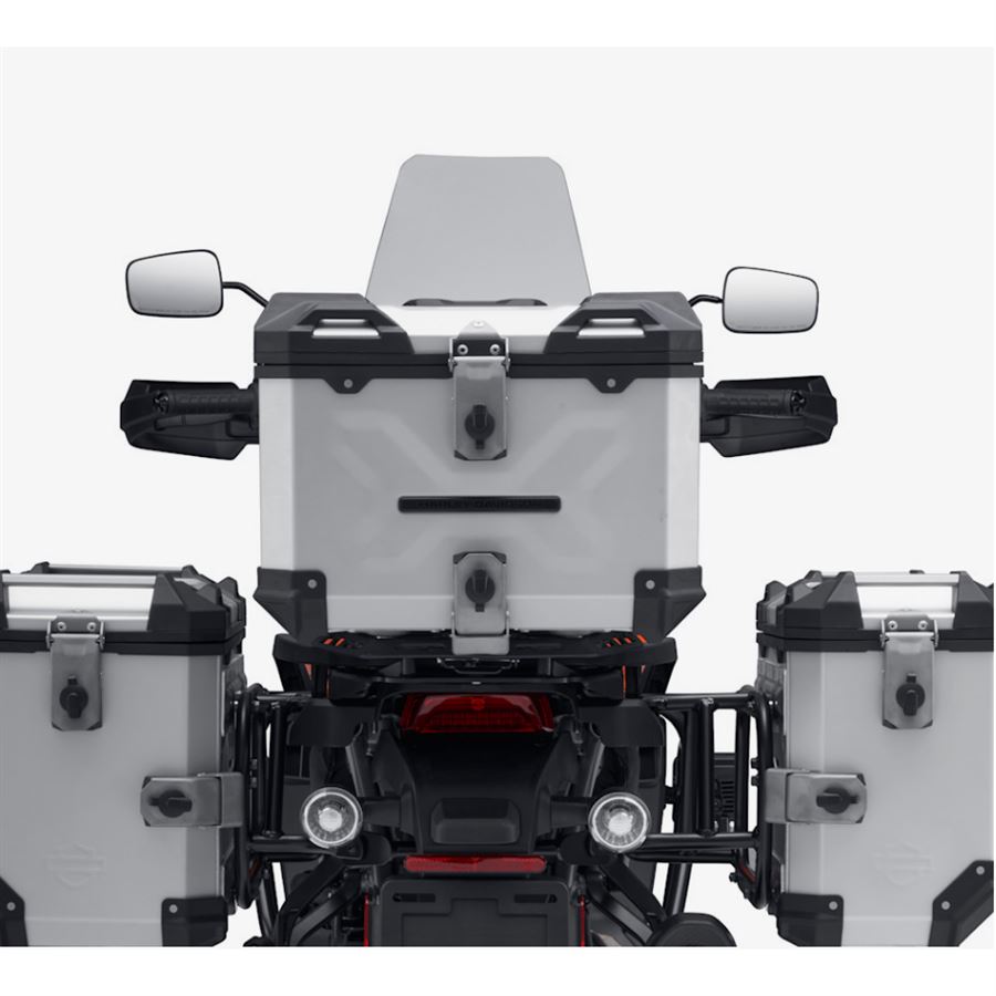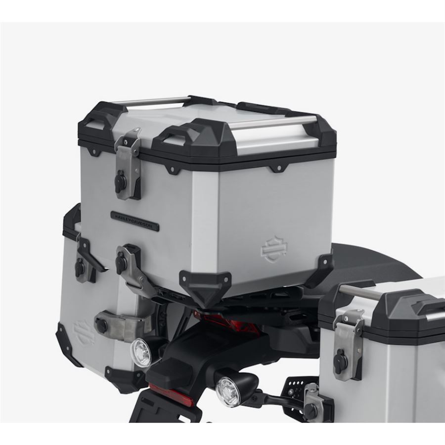 Robustní hliníkový Top Case vyvinutý ve spolupráci se značkou SW-MOTECH je navržen pro cestování na silnici i v terénu. Každý díl byl laděn a testován přímo na motocyklech Harley-Davidson, aby byla zajištěna perfektní kompatibilita, vysoká odolnost a spolehlivost – bez kompromisů v ovladatelnosti nebo náklonu. Samotný kufr i jeho držáky úspěšně prošly statickými pádovými testy Harley-Davidson.