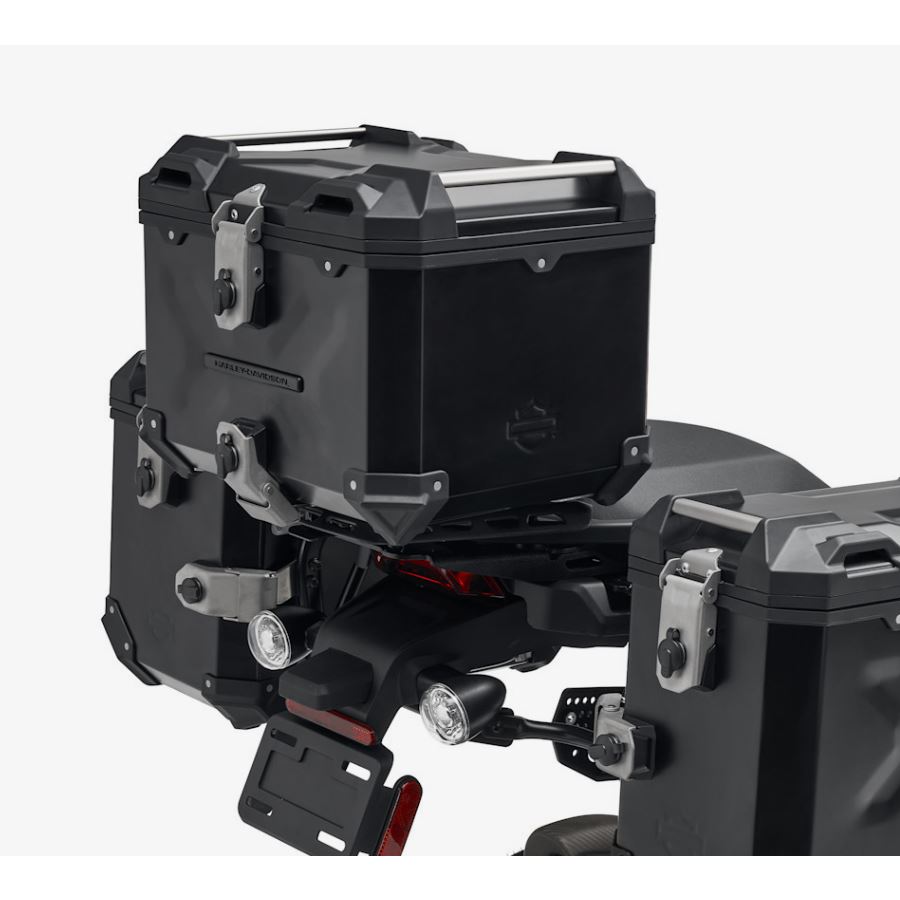 Robustní hliníkový Top Case vyvinutý ve spolupráci se značkou SW-MOTECH je stavěný na cestování po silnici i mimo asfalt. Každý díl je laděný a testovaný přímo na modelech Pan America, aby nabídl perfektní kompatibilitu, vysokou odolnost a spolehlivost – bez kompromisů v ovladatelnosti nebo náklonu motocyklu. Kufr i jeho držáky úspěšně prošly statickými pádovými testy Harley-Davidson.