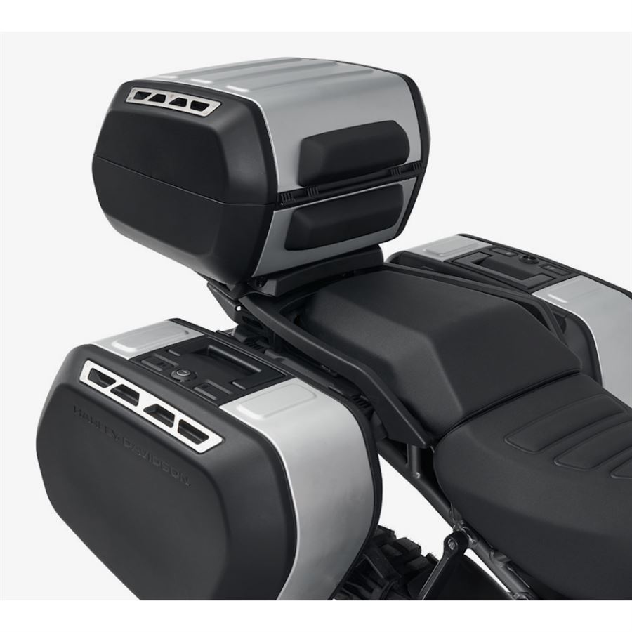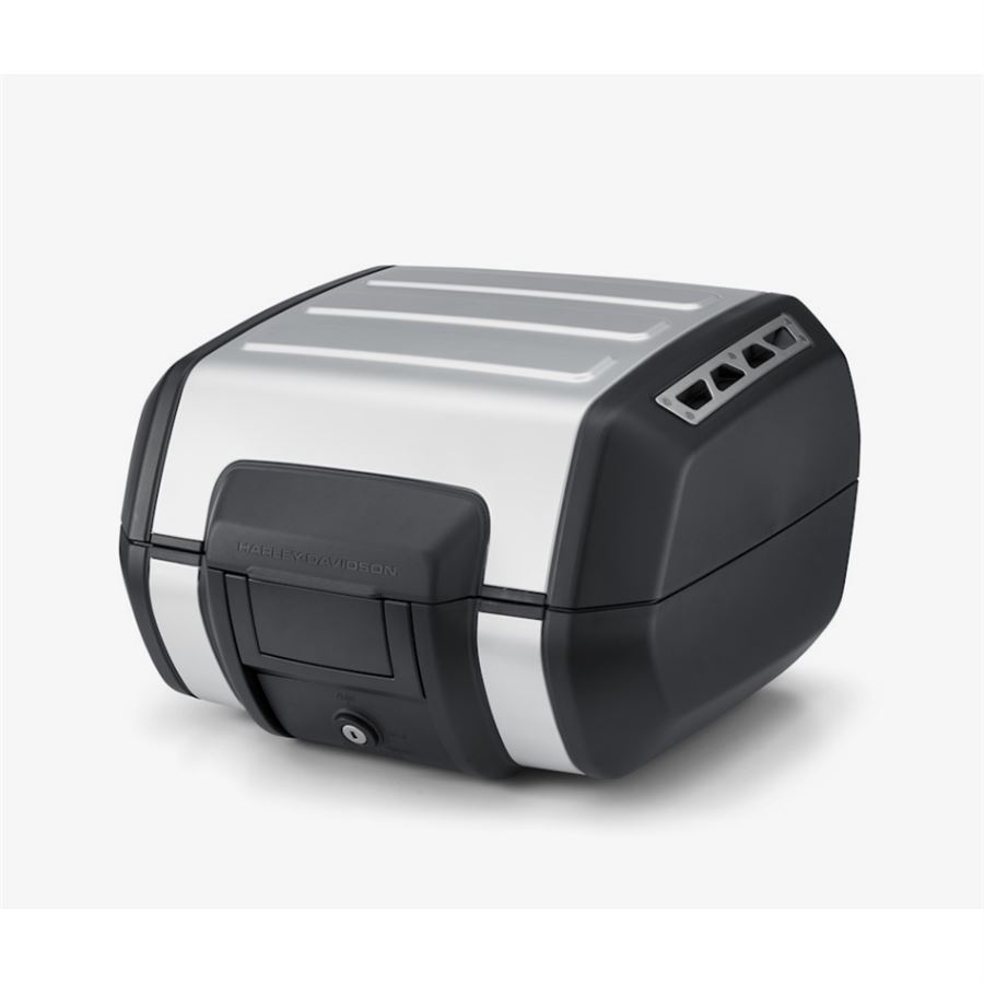 Díky těsnění ve víku je kufr vodotěsný a splňuje přísné Harley-Davidson® testy průniku vody. Horní kufr i jeho montážní systém (prodává se zvlášť) jsou navrženy tak, aby maximalizovaly užitečné zatížení bez zhoršení ovladatelnosti a jízdních vlastností. Integrované madlo usnadňuje přenášení mimo motorku a přiložená sada umožňuje sjednocení zámků s klíčem zapalování. Pro ještě větší komfort je k dispozici vnitřní vložka (Top Case Liner – prodává se samostatně).