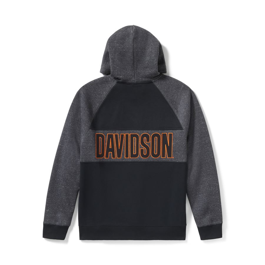 Dodejte svému volnočasovému stylu výrazný nádech s mikinou Harley-Davidson® Bar Font Colorblock Pullover.