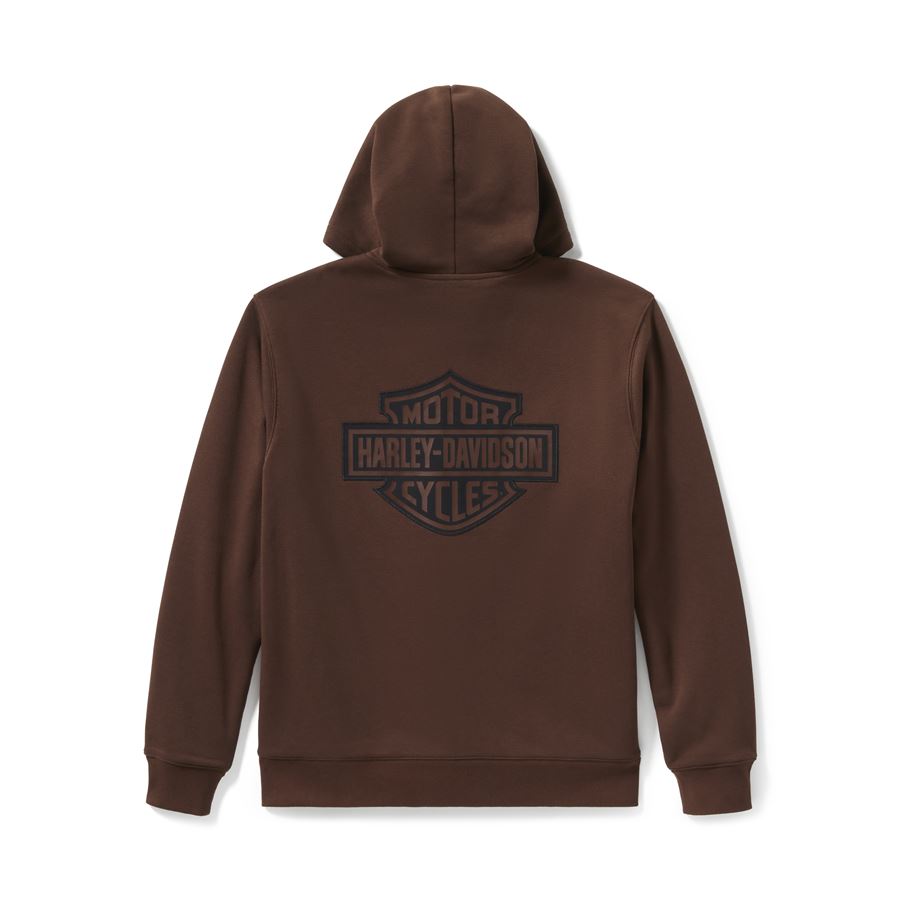 Hnědá mikina na zip s kapucí spojuje klasický ležérní styl s výrazným motorkářským charakterem.