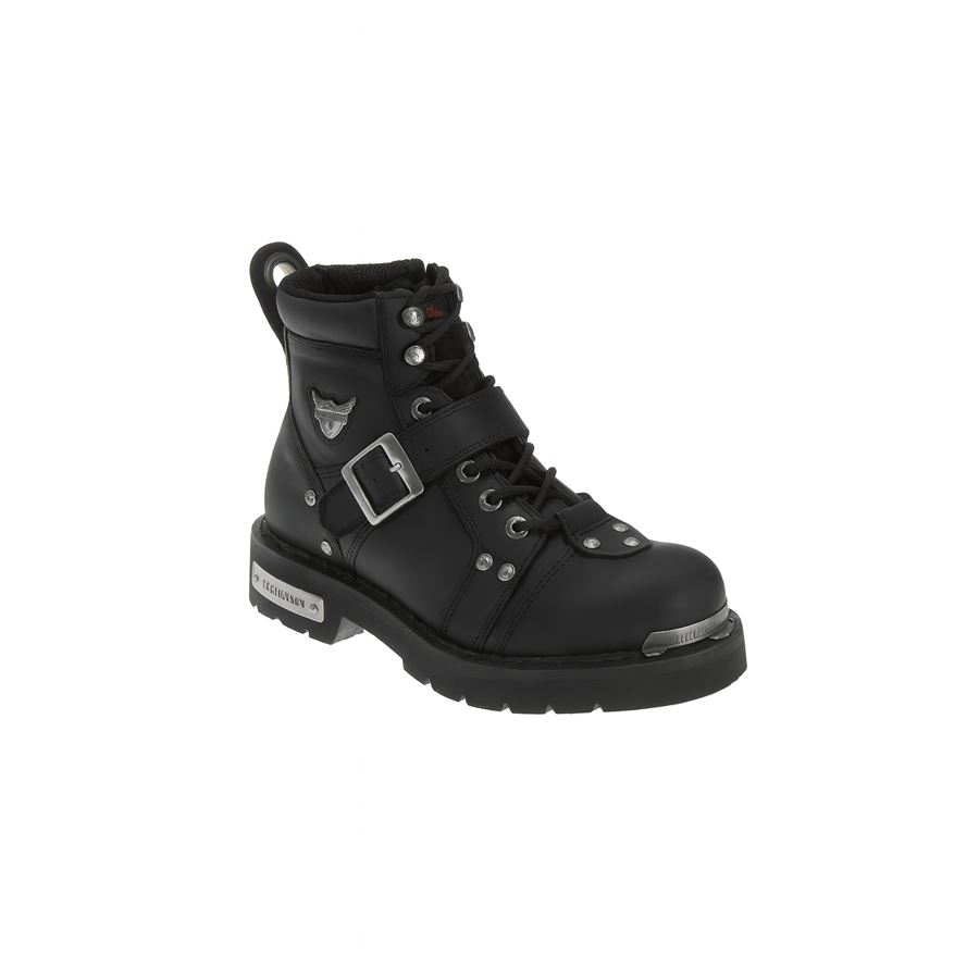 Díky ikonickým kovovým detailům a křížovému pásku s přezkou působí stylově a přitom funkčně – přesně tak, jak to má u Harley-Davidson být.