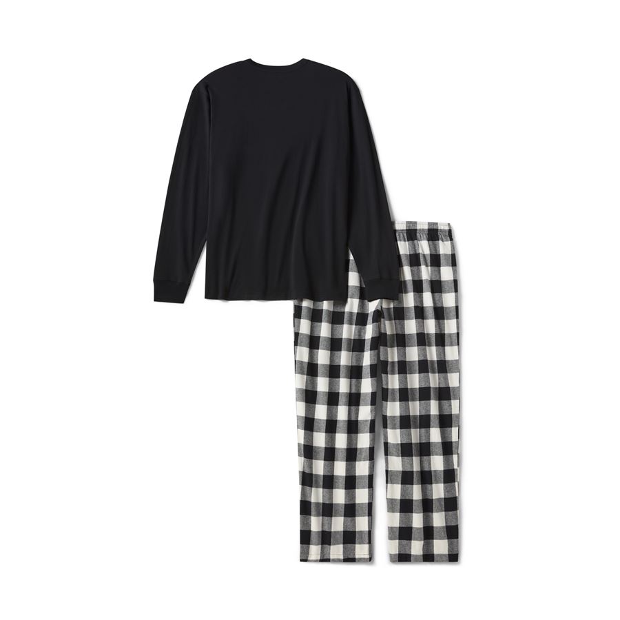 Pohodlné pyžamo kombinuje černý top s ikonickým Bar & Shield logem a kostkované kalhoty v buffalo stylu. Vhodné jak pro klidný spánek, tak pro pohodové chvíle doma.