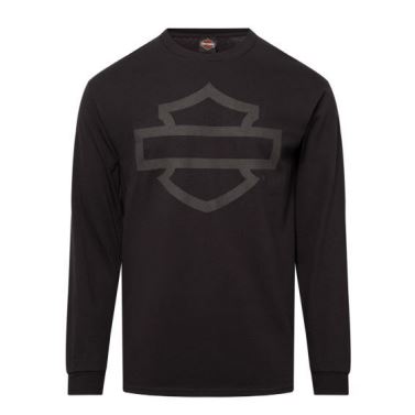 Černé tričko s dlouhým rukávem a decentním Bar & Shield logem na hrudi v tónu látky.