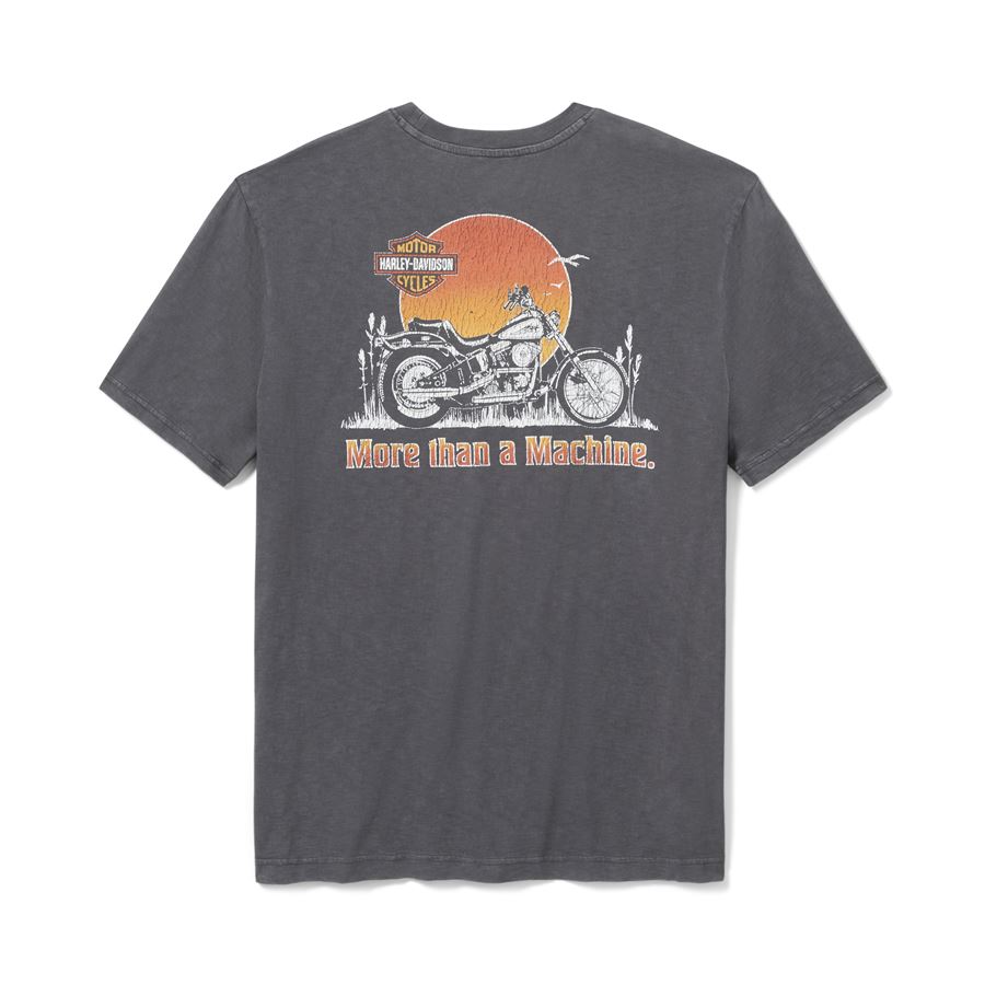 Speciálně barveno a prané pro retro vzhled a příjemně měkký dotek. Na zádech zdobí tričko ikonický obrázek modelu 1989 FXST Softail® a slavný slogan „More than a machine“.