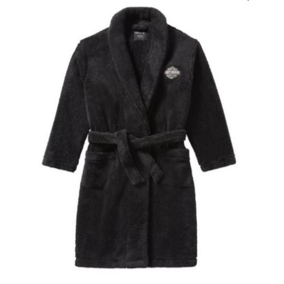 Domácí pohoda v motorkářském stylu – přesně to nabízí černý župan Harley-Davidson Bar & Shield.