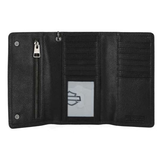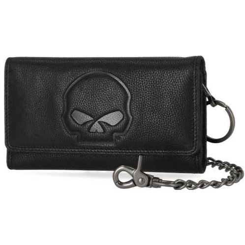 Stylová kožená trucker peněženka s reliéfním motivem lebky, která dokonale vystihuje drsný charakter značky Harley-Davidson®.