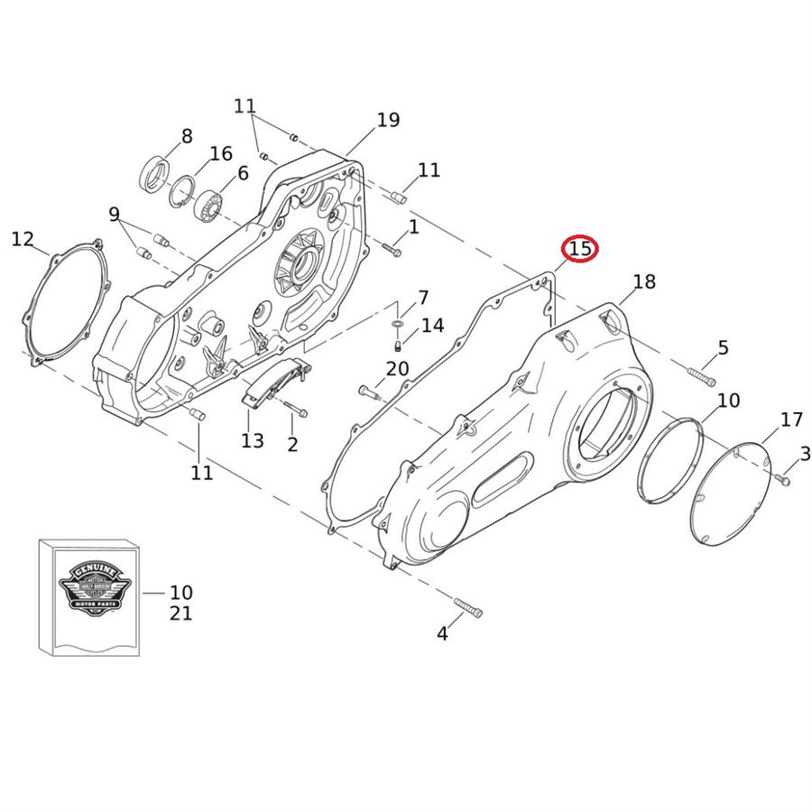 Originální těsnění krytu primárního řetězového pouzdra (primary chaincase cover) od Harley‑Davidson, navržené pro přesné dosednutí a spolehlivé utěsnění proti únikům oleje při servisu nebo výměně krytu. Prodáváno jednotlivě.