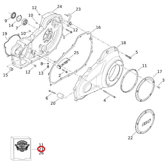 Originální Harley‑Davidson Primary Gasket Kit — nová sada těsnění primárního krytu dodávaná v originálním provedení, určená pro spolehlivé utěsnění při servisu nebo výměně primárního krytu. Dodáváno jako nový díl, viz obrázky.