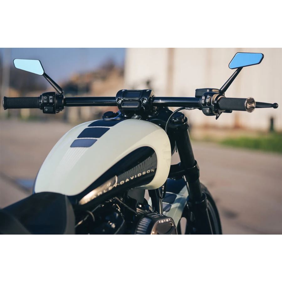 Flat-Riser Kit dodá vaší Harley-Davidson Breakout z let 2018–(nevhodné pro OEM řidítka od 2023) superplochý vzhled řidítek, přitom zachovává umístění originálního tachometru. Sada je dodávána v páru a je určena ke kombinaci s původní svorkou řidítek.