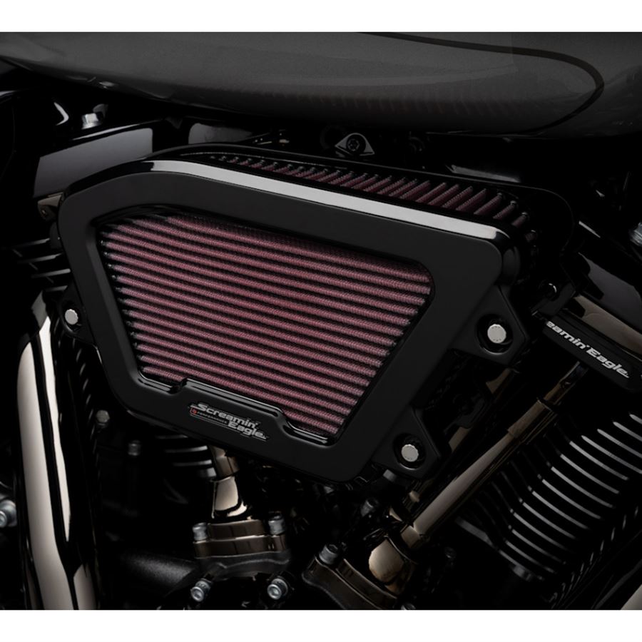 - Stage I Screamin’ Eagle® Extreme Flow air cleaner v „Milwaukee-Eight Wedge“ tvaru