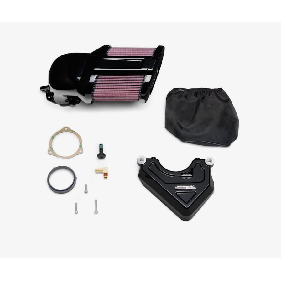 Vzduchový filtr je dimenzovaný tak, aby nakrmil i velkoobjemové motory s výkonem přes 150 hp, a oproti běžným sacím systémům nabízí výrazný nárůst točivého momentu především ve středním pásmu otáček. Voděodolný K&N olejový bavlněný filtr je pratelný a znovu použitelný, standardní rain sock pak přidává další pojistku při jízdě v dešti nebo prachu.