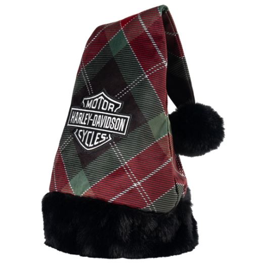 Oslavte svátky s originální Santa čepicí Harley-Davidson® v moderním kostkovaném plaid designu.