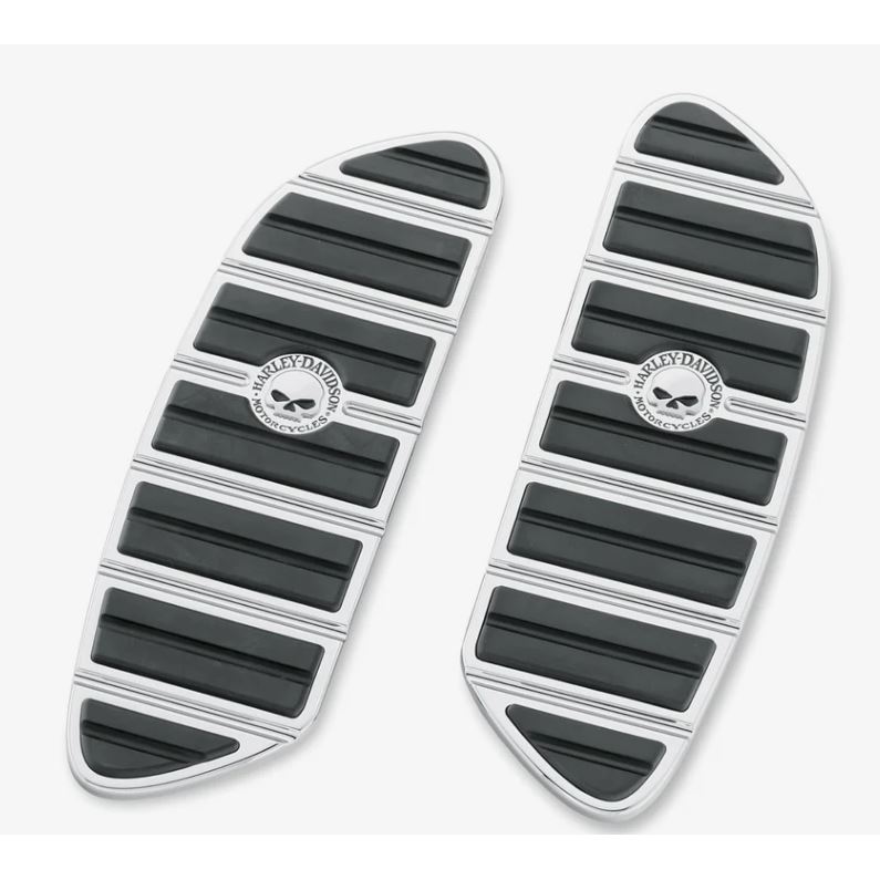 Dodejte svému motocyklu výrazný custom vzhled díky vložkám footboardů s ikonickým Willie G Skull motivem. Snadno instalovatelné vložky si zachovávají originální systém tlumení vibrací, takže poskytují pohodlnou, únavu snižující jízdu. Swept Wing tvar navíc ladí s moderním i klasickým stylem Harley-Davidson®.